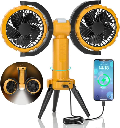 پنکه شارژی چندکاره مدل Double Head Camping Fan with LED Light F7300
